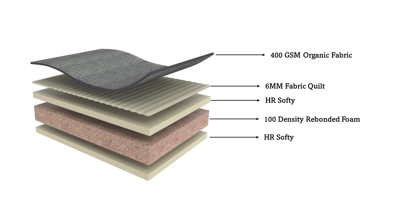 - Materials used : 100 Density Rebonded foam + HR Softy Foam (Both sides)